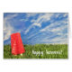 enkele rode papegaai in groen gras met zomerhemel voor de viering van de zomerse plechtigheid