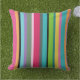 Levendige strepen in de tinten roze, rood, geel, groen, paarse, zwart, sinaasappel, turkoois en meer sieren dit kleurrijke gooi kussen!