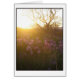 Camas op de voorgrond wordt ontstoken door de zon die zich aftekent achter de berg Tolmie in Saanich, BC (Vancouver Island)