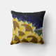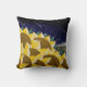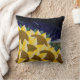 Zonnebloemen gooien kussens met een mooi afbeelding van de oogstvolk met een zonnebloem. Met gele, blauwe en beige kleuren is dit item ideaal voor uw oogst of decor in uw land.