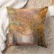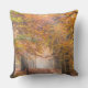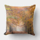 Drijf kussen met lichtstralen die ontstaan door zonnestralen door het bladeren van de herfst van de bomen langs een pad door een bos in de ochtend mist in de herfst.