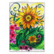 Oorspronkelijke tekening van een zonnebloem en andere bloemen. Creëer met behulp van pennen, tellers en pennen.