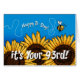 "Happy B-day - het is je 93ste!" Een schattige verjaardagskaart met een bij die over een rij zonnebloemen vliegt.