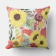 Waterverf afbeeldingen gouden zonnebloemen, maroon- en roze rozen vormen samen een binnenland op deze kleurrijke gooipijp. Samen met de bloem zijn afbeeldingen zacht groen en violet lavenderbladeren. De afbeeldingen worden geplaatst op een witte achtergrond. Beide zijden van de kussen hebben hetzelfde ontwerp.