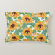 Een kussen met een schattig zomerspatroon. gele zonnebloemen omgeven door groene bladeren in een herhalingspatroon.