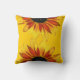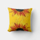 Deze briljante, decoratieve gooikussens heeft twee prachtige oranje, gele en gouden zonnebloemen die breed open zijn tegen een gouden gele achtergrond. Het afbeelding wordt op de achterkant herhaald.