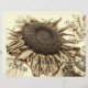 Giant sunflower ephemerscript. Oude sepia toon bruine tuintuinkunst. Dit 110 lb papier kan worden gebruikt voor foto-album, -boot of -ontleding die zwaarder papier vereisen. oud plakboekpapier. De boerderij van de Retrolanden inspireerde in de zomer botanische zonnebloemvelden. Mooie bloemen afdrukken. Chic, elegant, trendy, unieke grijsstructuur. Afbeelding copyright Marg Seregelyi Fotografie.
