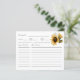Robuust recept voor uw vrijgezellenfeest met bloemetjesthema, met een afbeelding van de waterverf van gele zonnebloemen met de adem van de baby. Vraag uw gasten om deze recept kaart in te vullen en ze naar de bruid of bruiloft te brengen. Ideaal voor een zomerdouche.