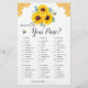 Deze vrijgezellenfeesten spelkaart is Wat zit er in je tas? Het ontwerp heeft een waterverf bloemontwerp met zonnebloemen, eucalyptusbladeren, honingbijen en honingraat. Personaliseer de achterkant van de kaarten met de naam van de bruid. Bijpassende vrijgezellenfeest partij benodigdheden ook beschikbaar.