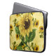 Kleurrijk hoesje heeft een grote afbeelding van zonnebloemen tegen de achtergrond van kleinere zonnebloemen