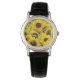Zonnebloemen op Dames Zwart Leren Strap Horloge
