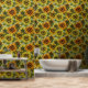 Zonnebloemen op Sage Background Foliage Oranje Yel Behang