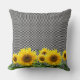 Zonnebloemen op zwart-wit schaakpatroon kussen