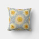 Dit kussen is een zonnebloemkussen met een geluksthema. De gebruikte hoofdkleur is gele zonnebloemen op een hemelsblauwe achtergrond, wat een warm gevoel geeft. Het gaat goed in de woonkamer en is ook goed voor de kamer van een kind.