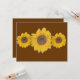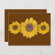 Drie zonnebloemen gerangschikt in een rij. Uniek ontwerp in oogsttijd. Door Alma Wad. Ideaal voor zomerpartijen. Zie bijpassend poststuk :