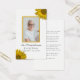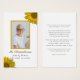 Geef je gasten die de Celebration of Life Service van je vertrokken bezoeken de Yellow Sunflower Blossoms Funeral Memorial Prayer Kaart. Personaliseer het met een foto, naam van de overledene, geboorte- en sterfdata en gedicht of gebed op de rug. Deze vrolijke custom flowery death tribute kaart is voorzien van gele zonnebloesems die de hoeken versieren met een witte achtergrond.