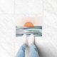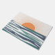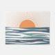 Abstracte illustratie van zonsopgang met oranje zon en blauw, wit en turkooise zee golven decoratie