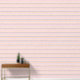 Dit minimalistische patroon heeft horizontale strepen in zachte tinten van sinaasappel, paarse, roze en perzik, die de warme en serene kleuren van een ondergaande zon oproepen. De gevarieerde dikte van de lijnen voegt visuele interesse toe, terwijl het zachte kleurenpalet het ontwerp licht en luchtig houdt. Het subtiele contrast tussen de donkerdere en lichtere strepen creëer heeft een evenwichtige en harmonieuze uitstraling.
