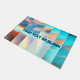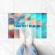 Een kleurrijke en zeer abstracte weergave van een zonsondergang. De kleuren variëren van het blauw van de hemel, tot het geel van de zon, tot oranje en rood van wolken aan de horizon. Voeg je eigen tekst toe.