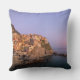 Foto gooit het kussen van het kussen met de paarse hemel op zonsondergang boven het mooie dorp Manarola, gebouwd op de rotsen boven het mediterrane Zee aan de kust van de Cinque Terre in Liguria, Italië.