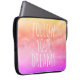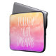 Voeg je dag wat inspiratie toe met deze "volg je dromen" inspirerend laptophoes. De citaattypografie in het wit bevindt zich op een achtergrond van zonnegeel-oranje, roze en paarse wolken.