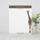 Een briefhoofd met een giraf die zijn hoofd van de hoek ronddraait. Dit kan worden gebruikt door een dierentuin of door iemand die een dierenactivist is of die met dierenredding werkt. Of als je gewoon iets anders wilt en van dieren houdt. Als je dit briefhoofd leuk vindt, kun je geïnteresseerd zijn in het bijbehorende visitekaartje hieronder.