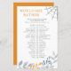 Zou ze liever een spelletje, met bewerkbare spelinstructies - leuke gokquiz om te spelen op je halloween-baby shower of -vrijgezellenfeest Dit herfst-themaontwerp heeft windswept herfstgebladerte en spinnenweb in een kleurenpalet van sinaasappel, grijs en storm blauw. Coördinerende items zijn te vinden in mijn winkel, in het Little Boo Halloween collectie.