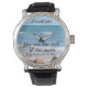 Dit horloge bevat een foto van een golvende Atlantische oceaankust, samen met een opstandig Bijbelvers uit het evangelie van Matthew.