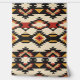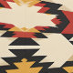 Dit kunstwerk heeft een gedurfd en dynamisch geometrisch patroon, geïnspireerd op de traditionele Zuidwestelijke textiel design. De compositie wordt gedomineerd door scherpe motieven, waaronder diamanten, driehoeken en zigzaggen, gerangschikt in een symmetrische en ritmische lay-out. Het kleurenpalet bevat aardse tinten zoals diep rood, mosterdgeel, beige en zwart, die bijdragen aan de rijke en warme esthetiek van het ontwerp. Het opvallende contrast en de ingewikkelde details roepen een gevoel van cultureel erfgoed en vakmanschap op, waardoor dit patroon visueel aantrekkelijk en suggestief is.