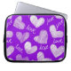 Zutpaarse witte gekrabbelde hart met liefdesschrif laptop sleeve