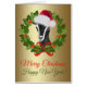 Een prachtig schilderij van mijn Christie, een Alpiene melkgeit - Ze draagt een kersthoed omringd door een feestelijke kerstlepel, allemaal op een gouden achtergrond die gemakkelijk kan worden verwijderd om een witte achtergrond te onthullen als je wilt - in een kerstscène omgeven door hetzelfde kerstfeest en aanpasbaar binnengevoel - Geitste kerstKaarten voor geitenliefhebbers om te verzenden als een unieke feestelijke Kaart die vrolijk kerstfeest wil - ©. kunstwerk: GetYerGoat.com