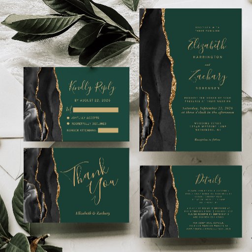 Black Gold Agate Script Emerald Green WeddingOntworpen door Akhates Designs