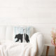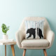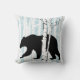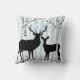 Als je van vogelbomen, herten, natuur en wilde dieren houdt, dan hou je van deze kussen in zwart, blauw en wit. Met een vogelbos met blauwe lucht en een zwart silhouet beer vooraan, een buck en doe hert achteraan!