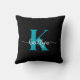 Dit eenvoudige, elegante zwarte 16-inch werpkussen met uw voornaam in een trendy scriptlettertype in het wit en uw eerste initiaal in een modern petten lettertype in het blauwgroen is ideaal voor u. Het is stijlvol en trendy en toch zeer klassiek. Het zal er fantastisch uitzien in je slaapkamer, woonkamer, kijkkamer, schuur.