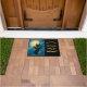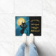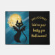 Een echt mooi en elegant Halloween doormat voor groetenfamilie, vrienden, en truc-of-behandelaars! Deze heeft een zwarte kat die een stokje is voor Halloween die voor een gloeiende volle maan zit (met bloemen)!