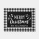 RUSTIEK ZWART-WIT BUFFEL CHECK VROLIJK KERSTSCRIPT MET FAMILIENAAM boerderij, buffalo+plaid, modern+boerderij, modern+script, rustiek, buffalo+check, kerst, vakantie, rood+en+zwart+buffalo+check, familie+naam