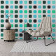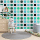 Dit ontwerp heeft een modern gestructureerd geometrisch motief met zwart, donkergroen, hemelsblauw en aqua turquoise rode afgeronde vierkanten op een wit grijs gekleurde achtergrond. Het patroon is zowel als elegant en straalt een funky hipster essentie uit. Het is een verfijnd en chique ontwerp dat eclectisch minimalisme vertegenwoordigt, ideaal voor artistieke interieurontwerpers, liefhebbers van huisdecors, trendsetters en liefhebbers van , retro of abstracte digitale geometrische patronen. Dit maar trendy hipsterpatroon is veelzijdig en wordt aangeboden op een reeks eigentijdse producten voor huisdecoratie, geschikt voor het verbeteren van de sfeer van verschillende ruimtes zoals hoofdslaapkamers, keukens, woonkamers, mannen grotten, universiteitsslaapzalen, condominiums, studio's of appartementen.
