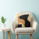 Modern kussen met een abstract ontwerp in zwart en perzik, kleuren zijn aanpasbaar aan elk interieur. Het ontwerp omvat dunne golvende lijnen en effen kleuren.