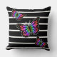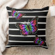 Kleurrijk roze rood blauw groen zwart en wit gestreept modern gooien kussen.