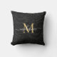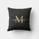 Zwart en Goud Bloemen Botanisch Monogram Naam Kussen.