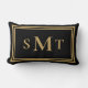 Creëer uw eigen gepersonaliseerde monogram kussen. Het initiaal bestaat uit drie letters in een elegante gouden typografie op een zwarte achtergrond.