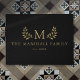 Deze moderne, elegante, zwarte en gouden monogram familienaam deurmat is het perfecte toegangsstuk voor uw gezinswoning. Ontworpen door Thisnotme©