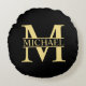 Zwart en goud - Gepersonaliseerd Monogram en naam Rond Kussen