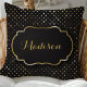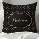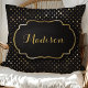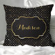 Zwart en Gouden Folie Polka Dot Confetti Monogram Kussen