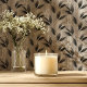 Zwart en grijs botanisch blad behang