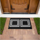 Black and Grey Simple Art Deurmat Het is een glad fleece materiaal met een antislip rubberen latex achterkant, goed voor binnen of overdekt buitengebruik. U kunt de marineblauwe achtergrond aanpassen aan een andere kleur. De grote deurmat is 24 inch x 36 inch, 1/8 inch dun. De kleine deurmat is 18 inch x 24 inch, 1/8 inch dun.