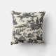 Elegant accent gooit kussens af in een zwart en ivoor Frans Toile patroon, van het dagelijks leven in het land.