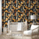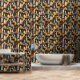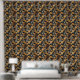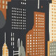 Zwart en Oranje Stadsgebouwen in Herfst Patroon Behang