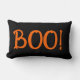 De achtergrond is voorzien van een aanpasbare zwarte effen kleur. Halloween thema lumbale kussen voor uw oktober decor. U kunt de boney "BOO!" typografie aanpassen.