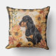 Zwart en Tan Coonhoun Dog Herfst Waterverf Flowers Kussen